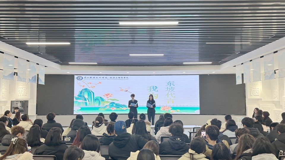 本次大赛自9月启动以来,得到全院学生积极响应,经过层层选拔,最终9组优秀团队脱颖而出跻身决赛。决赛现场氛围热烈,各参赛团队紧扣“东坡文化”核心,从东坡诗词、生平故事、美食文化、历史足迹和精神内涵等多元维度切入,通过精心制作的推广视频与声情并茂的现场讲解,全方位展现东坡文化的深厚底蕴与时代魅力。