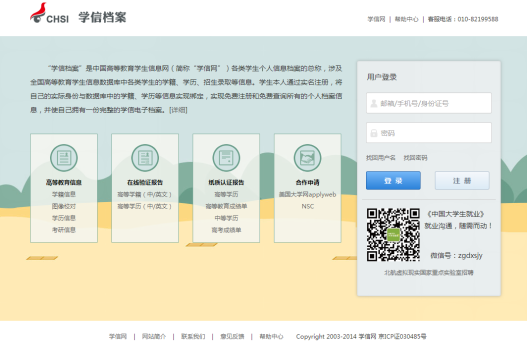 1、登陆中国高等教育学生信息网(学信网)< http://www.chsi.com.cn/>
