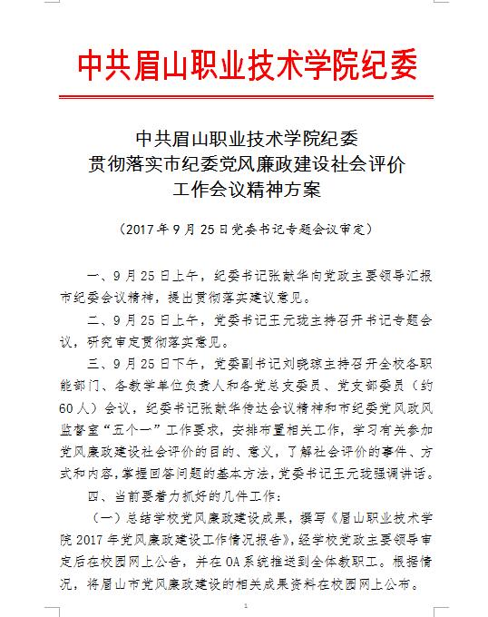 贯彻落实党风廉政建设社会评价会议精神方案