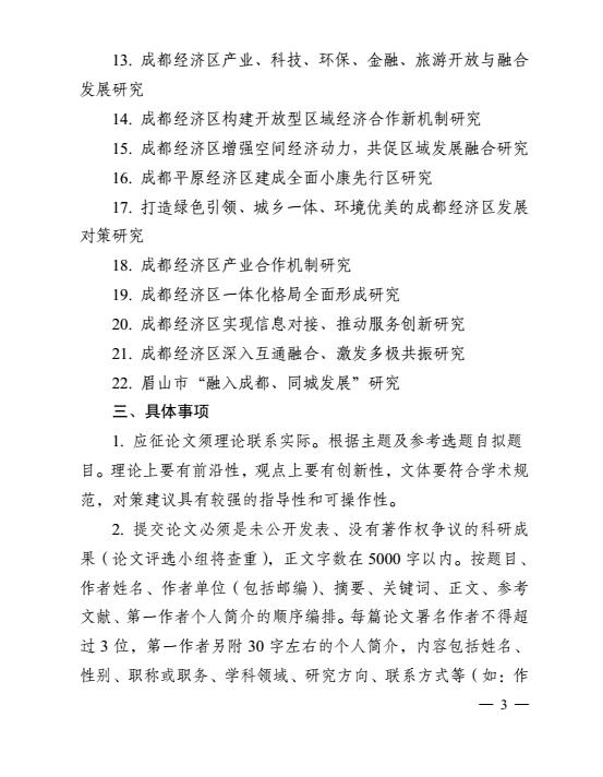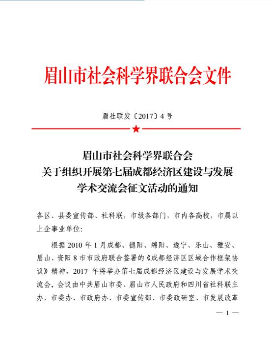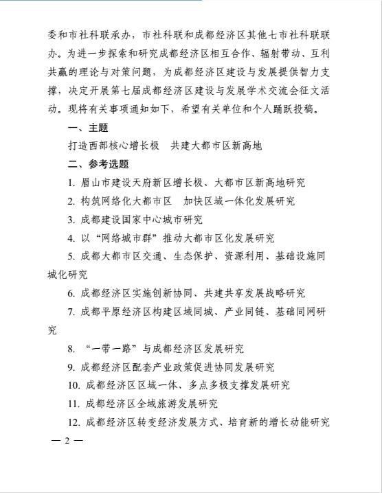 第七届成都经济区建设与发展学术交流会征文活动