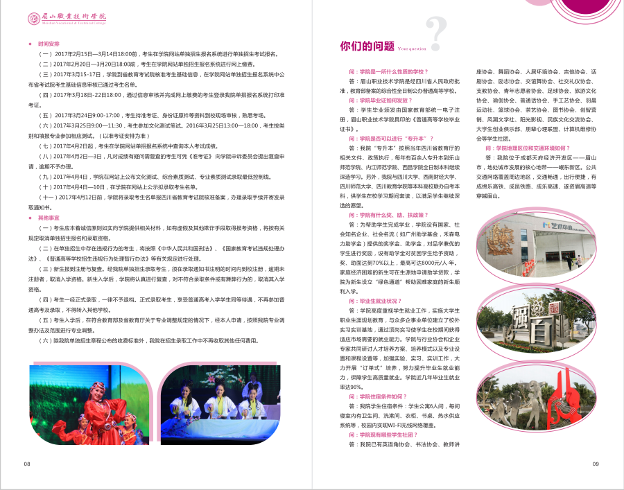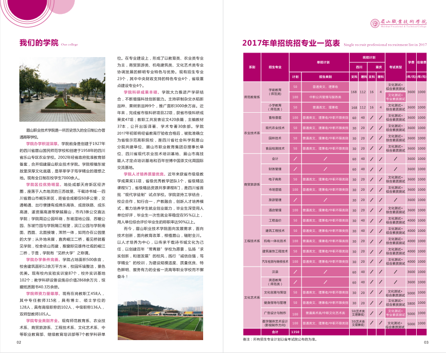 眉山职业技术学院2017年单独招生简章