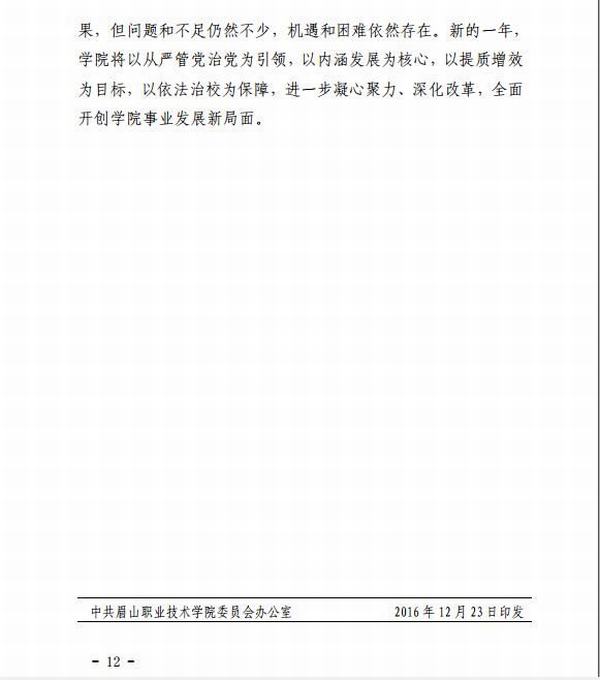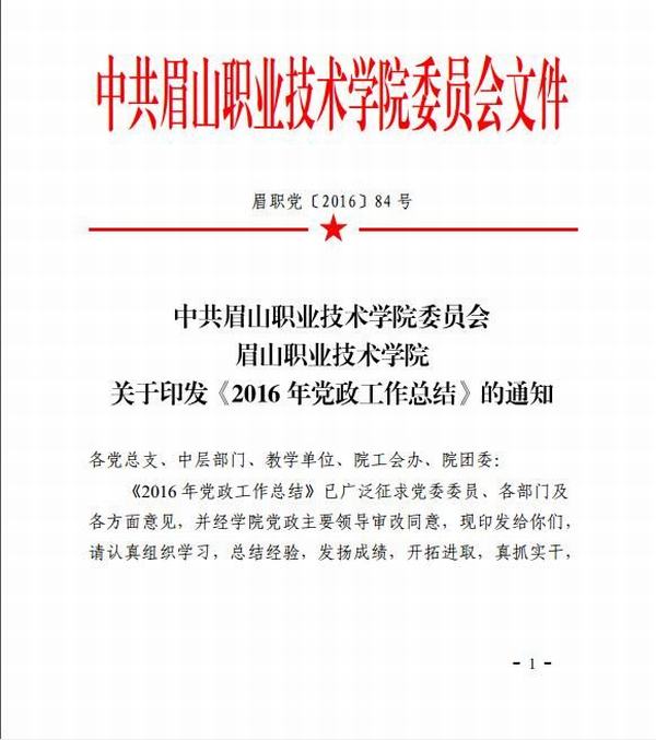 中共眉山职业技术学院委员会 眉山职业技术学院关于印发《2016年党政工作的通知》