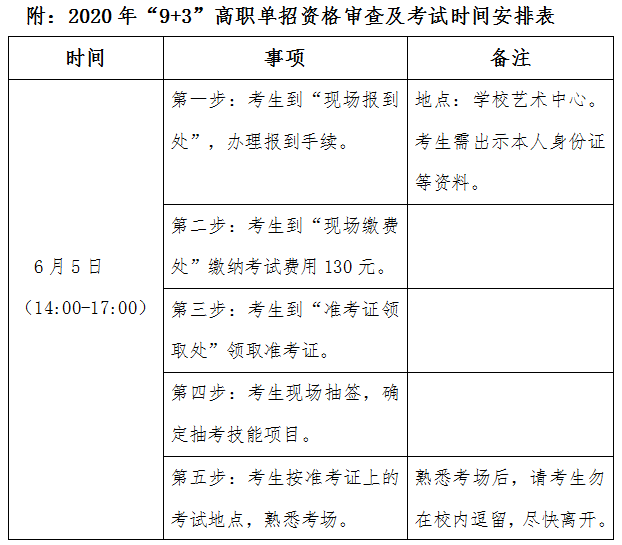 根据我省有关“9+3”单独招生考试文件精神,单招考试考试定于6月6日进行,为保证师生身体健康,招生工作有序,现将有关事项通知如下: