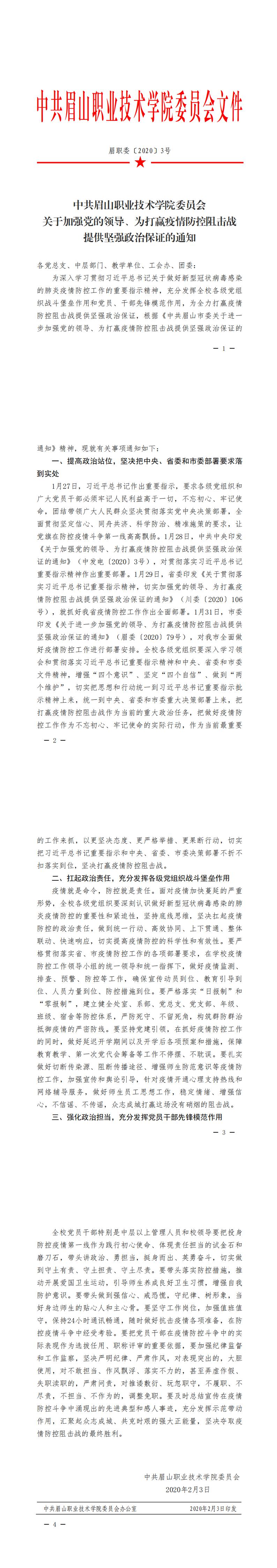 关于加强党的领导、为打赢疫情防控阻击战提供坚强政治保证的通知