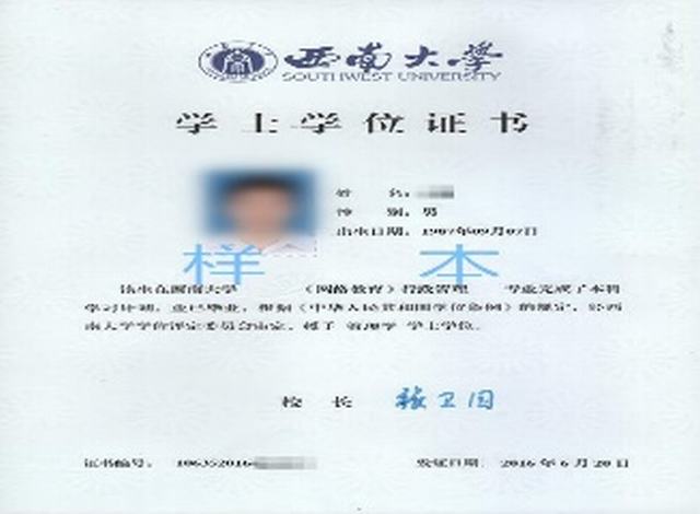 4.符合西南大学授予成人高等教育(含网络和自考)本科毕业生学士学位条件者可以授予成人高等教育学士学位(见图3:学士学位证书样式)。