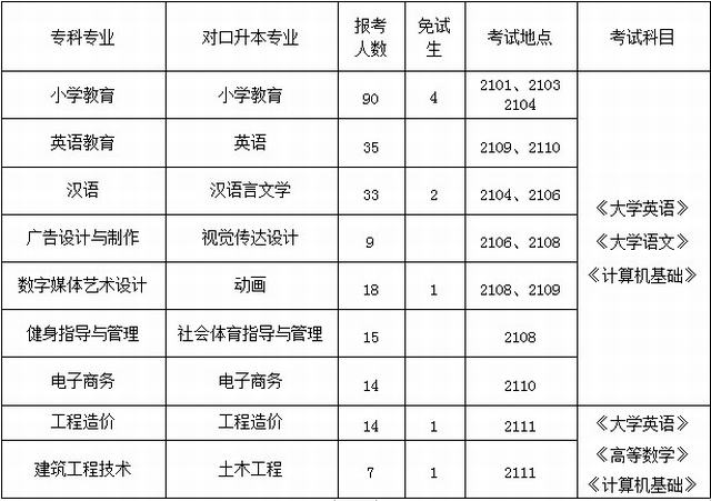 (二)对口内江师范学院“专升本”考试安排