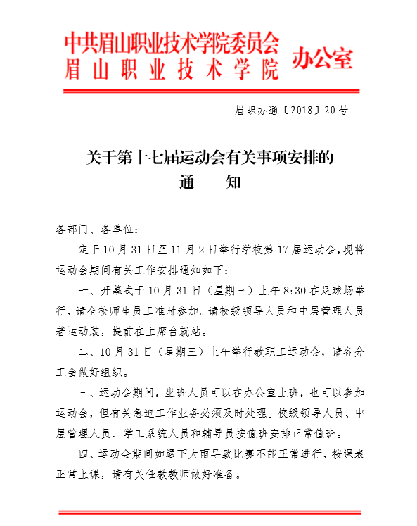眉山职业技术学院关于第十七届运动会有关事项安排的通知