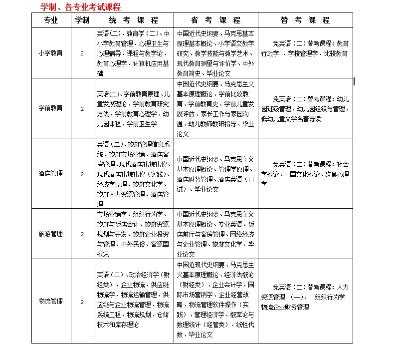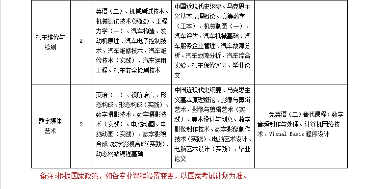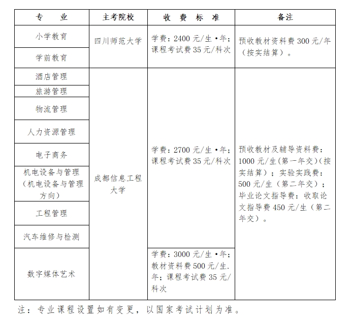 四川师范大学、成都信息工程大学应用型高等教育自考本科专业课程设置一览表