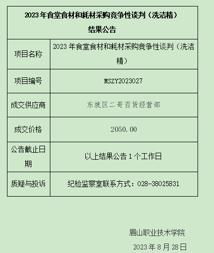 上一条:2023年食堂食材和耗材采购竞争性谈判(禽肉)结果公告
