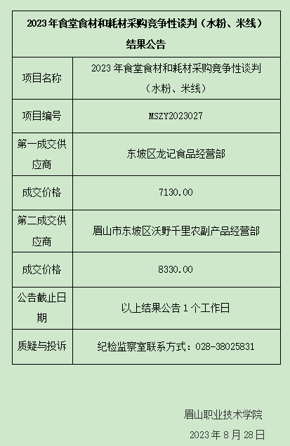 2023年食堂食材和耗材采购竞争性谈判(水粉、米线)结果公告