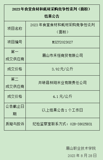 2023年食堂食材和耗材采购竞争性谈判(面粉)结果公告