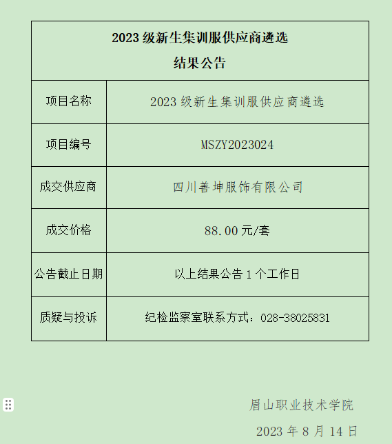 2023级新生集训服供应商遴选结果公告