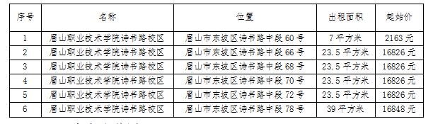 招租房屋位于眉山市东坡区诗书路中段60号、66号、62号、70号、72号、78号门面即将到期,租赁期限1年。本招租标的以现状租赁,租赁用途:商业经营。以竞价方式公开出租,现将有关事项公告如下: