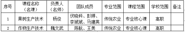根据《农业农村部科技教育司关于开展首届涉农职业院校服务乡村振兴“名师名课”资助项目工作的通知》(农科(教育)函〔2022〕8号)文件精神A,我校拟向四川省农业农村厅推荐《果树生产技术》《作物生产技术》两门课程参与评审。现将两门课程申报情况进行公示,公示期为2022年6月6日至2022年6月13日。公示期内任何单位或者个人对公示项目持有异议的,请以书面形式提出并提供必要的证明材料。