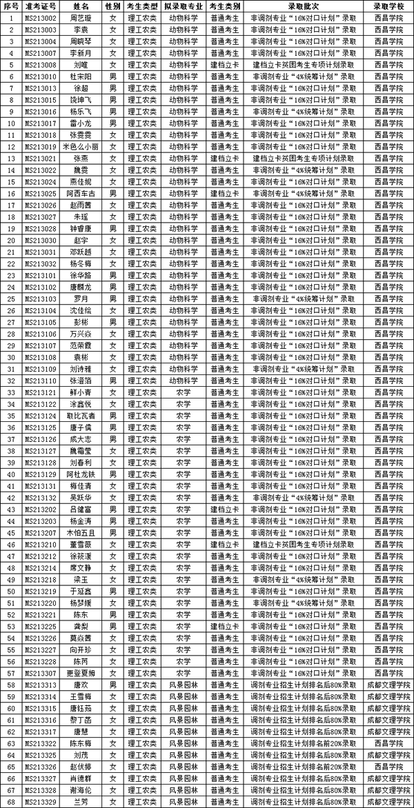 更正内容:减少我校“畜牧兽医”预录取学生1名,准考证号:MS213011。