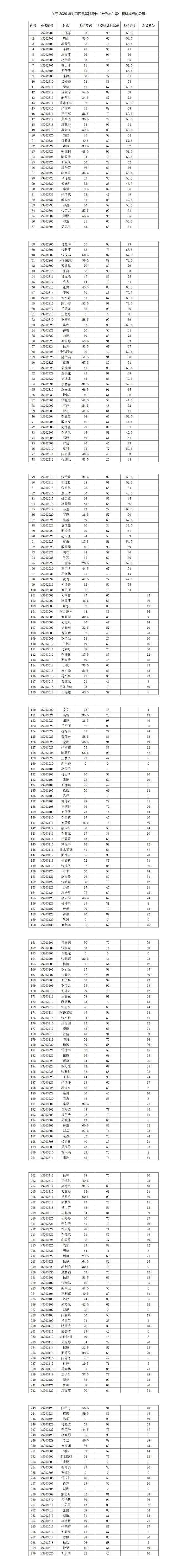 附件: 西昌学院2020年“专升本”考试卷面成绩表