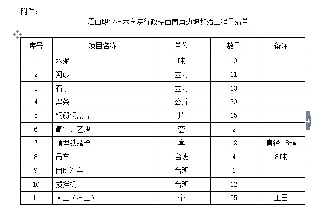 (1)项目名称:眉山职业技术学院行政楼西南角边坡整治工程