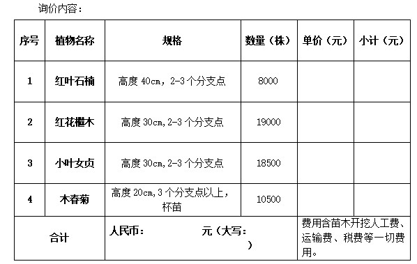 眉山职业技术学院拟对篮球场周围地段进行地表绿化改造,需购买一批地被植物,现采用询价的方式确定供应商,欢迎合格的供应商参加。具体事项公告如下:
