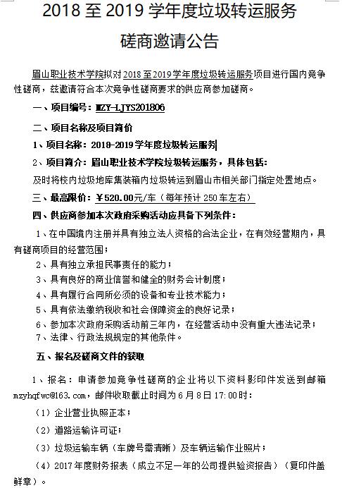 2018至2019学年度垃圾转运服务磋商邀请公告