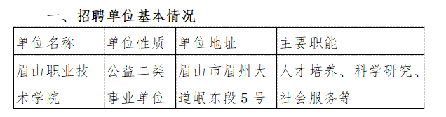 联系方式:眉山职业技术学院组织人事部吕老师028-38282696