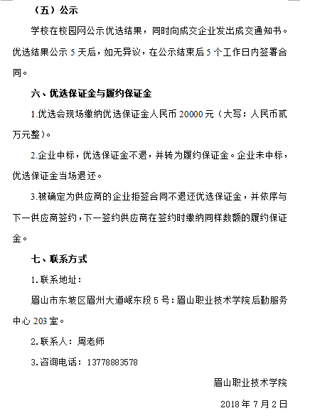 眉山职业技术学院食堂基本餐校企合作企业遴选公告