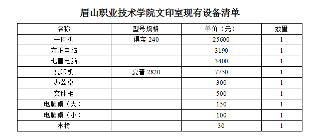 (1)学院提供现有基本打印、复印设备(详见下表:眉山职业技术学院文印室现有设备清单);不足部分由承租方自行准备;企业负责设备的日常维护维修。如合同期中设备损坏,不能使用,由企业负责购买新设备替换,新设备产权归企业,旧设备交还学院。合同期满后将剩余设备移交给甲方。