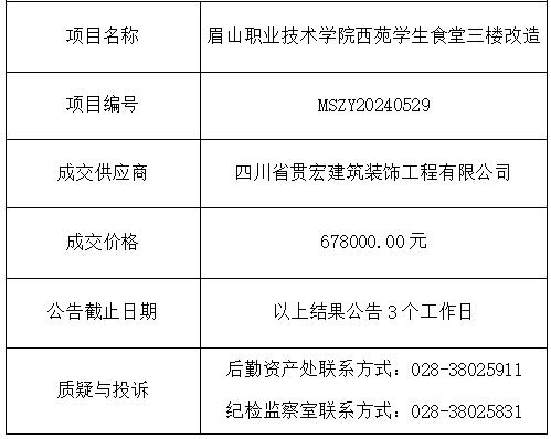 眉山职业技术学院西苑学生食堂三楼改造项目竞争性谈判结果公告