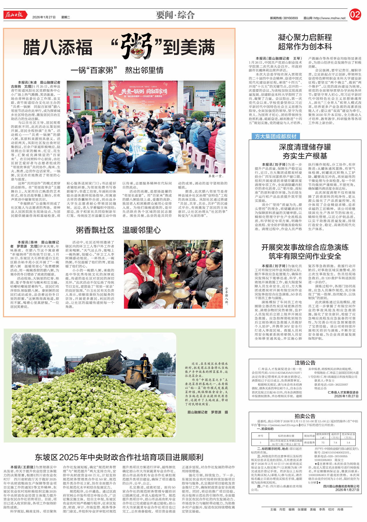 本报讯(眉山融媒记者 王琴)1月26日,中国共产党眉山职业技术学院第二次代表大会召开。市政府副市长戴林莉出席并讲话。 本次大会是学校在深入贯彻党的二十届四中全会精神、奋进中国式现代化建设新征程,承续“十四五”、开局“十五五”的关键节点,召开的一次重要的会议,为该校加快实现高质量发展、创建职业本科大学指明了方向、凝聚了力量。会议指出,第一次党代会以来,学校党委坚持以习近平新时代中国特色社会主义思想为指导,全面加强党的领导,坚守为党育人、为国育才初心,团结带领师生抢抓机遇、砥砺奋进,顺利推进“十四五”规划实施,党的建设与人才培养、产教融合等各项事业均取得显著进步,为眉山经济社会发展作出了积极贡献。 会议强调,要牢记责任、履职尽责,立足新起点守正创新,带领师生奋进特色鲜明职业本科大学建设新征程;要坚定“两个确立”、做到“两个维护”,以党的政治建设为统领,将党的全面领导贯穿办学治校各环节;要坚守育人初心,用习近平新时代中国特色社会主义思想铸魂育人,深化“三全育人”和育人模式改革,培养更多产业急需的高素质技能人才;要以省“双高”建设为牵引,聚焦2030年升本目标,全力推动人才培养、教育教学、科研服务等各项工作再上新台阶。