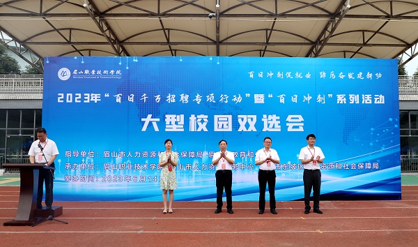 6月14日,由眉山市人力资源和社会保障局、眉山市教育和体育局指导,眉山职业技术学院、眉山市人力资源服务中心、眉山市东坡区人力资源和社会保障局承办的2023年“百日千万招聘专项行动”暨“百日冲刺”系列活动大型校园双选会开幕式在眉山职业技术学院运动场举行。