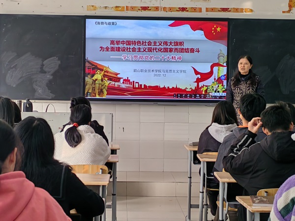“思政课是党的创新理论传播的主阵地,必须充分发挥思政课传播创新理论主渠道作用。”马克思主义学院党总支副书记、副院长熊祥梅表示,课堂上,思政教师结合身边鲜活故事,将党的二十大“大智慧”融入“小故事”,师生共同展望2035年,“本世纪中叶的中国是什么样,家乡是什么样”引发同学们热烈讨论;走进“信仰讲堂”,通过各种生动案例、观看记录短片等形式培养学生的家园情怀、人文素养和文化自信,引导青年学子做有志气、有骨气、有底气的时代新人;走进学生社团,通过学生不同专业,你一言,我一语,分享着身边发生的变化,诉说着对党的二十大精神的感悟,用“小课堂”讲好大政策;走进基层,宣讲团成员下沉一线将党的二十大精神浸润“万家心田”,以“小切口”诠释大道理,让基层党员干部 和群众坐得住、听得懂、学得进、用得好。