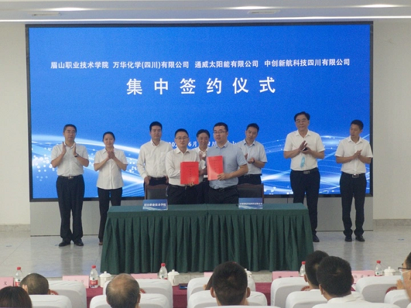 为贯彻市委市政府制造强市战略部署,推进天府新能源新材料产业学院建设工作,服务支撑眉山“1+3”主导产业特别是新能源新材料1号产业发展,6月2日,眉山职业技术学院举行了校企合作集中签约仪式,与通威太阳能有限公司、中创新航科技有限公司等企业签订了校企合作协议。通过校企合作共建学生实习基地、就业基地和产学研合作基地,加强企业与学校之间的合作与交流,拓宽学校学生就业渠道,实现学校、企业共赢发展。