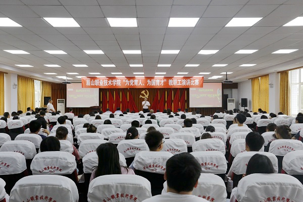 为庆祝建党100周年,讴歌中国共产党艰苦卓绝的奋斗历程和伟大成就,6月9日,学校在学术报告厅举办“为党育人、为国育才”教职工演讲比赛。学校党委书记代贤军,党委副书记杨成芬,党委委员、工会主席彭书君应邀出席比赛并为获奖选手颁奖。