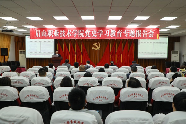 3月31日,眉山职业技术学院在图书馆学术报告厅举行党史学习教育专题报告会,学校党委书记代贤军出席会议并讲话,党委副书记杨成芬主持会议。 副院级领导张献华以《奋斗百年路 启航新征程》为题作党史学习教育报告。他围绕我校红色党史,在深入浅出的讲述中回顾了学校前身的国民师范学校概况、眉山县地下党组织建设、眉山特支早期主要活动、民国时期眉师的英烈人物,分享了自己的思考与体会,给听课党员进行了一次深刻的党史教育。 代贤军强调,要提高认识,增强政治自觉。全校各级党组织和党员干部、师生要把思想和行动统一到中央、省委、市委和学校党委的要求部署上来,增强开展好党史学习教育的思想自觉、政治自觉、行动自觉,牢牢把握学史明理、学史增信、学史崇德、学史力行的目标要求,树立正确的党史观,引导广大党员干部扎实开展专题学习,做到学党史、悟思想、办实事、开新局;要精心组织安排,务实高效推进。要按照党中央党史学习教育安排,在学校庆祝中国共产党成立100周年活动暨党史学习教育领导小组统一领导下,各党支部要加强对学习教育工作的梳理,细化实化各项工作任务,加快推动学校各方面的高质量发展;要强化宣传引导,营造浓厚氛围。各党总支党支部要充分利用校内外各种宣传阵地,加强宣传引导,切实加强思想引领,营造浓厚的党史学习教育氛围;要坚持统筹兼顾,推进各项工作。全校上下要把党史学习教育融入日常,抓在经常,将学习教育的成果转化为推动学校改革发展的实际成效,统筹做好党史学习教育,把党史学习教育和学校教育教学工作相结合,做到两手抓、两不误、两促进。 会后,大家纷纷表示,一定深入学习习近平总书记关于党的历史的重要论述,深刻理解开展党史学习教育的重大意义,以强烈的政治自觉、思想自觉、行动自觉,学好党史教科书、修好党史必修课,做到学史明理、学史增信、学史崇德、学史力行,真正实现学党史、悟思想、办实事、开新局,为建设眉山特色高水平现代化职业技术大学不懈奋斗。 眉山职业技术学院学校党委全体班子成员、副校级领导,中层管理人员、思政教师、辅导员,民主党派代表和学生代表130余人参加会议。