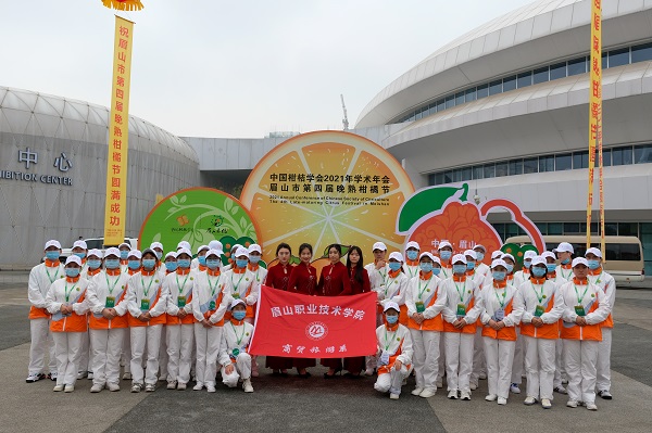4月11-12日,中国柑桔学会2021年学术年会暨眉山市第四届晚熟柑橘节开幕,商贸旅游系共组织了100余名师生结合自己专业特长参与到柑橘节服务工作中。
