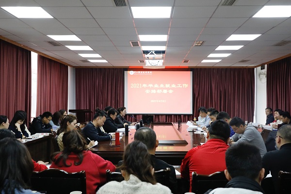 4月8日,学校在行政楼一楼会议室召开2021届毕业生就业工作部署会,党委委员、副院长胡洪安,学生处处长黎维红出席会议并讲话,学生处副处长刘菲主持会议。