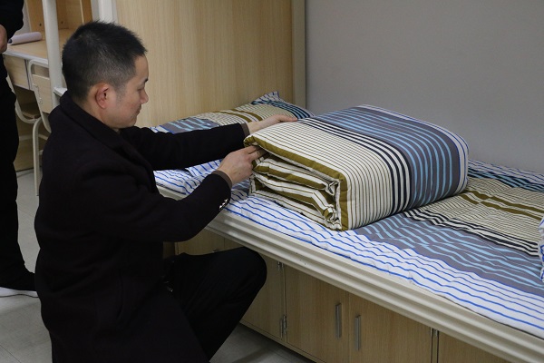 中职部学生管理人员深入学生寝室实地察看,结合东苑、西苑寝室布局,共同研究讨论制定寝室标准化建设方案,设立了东苑、西苑标准化寝室的具体要求及标准。辅导员按标准要求对学生寝室卫生、床铺整洁、物品规范等方面进行亲自示范和指导,同学们都积极响应,热情参与,严格按照寝室标准化建设各项要求开展活动。全体学生管理人员每天深入寝室检查,对发现的问题,要求相关寝室及时整改。