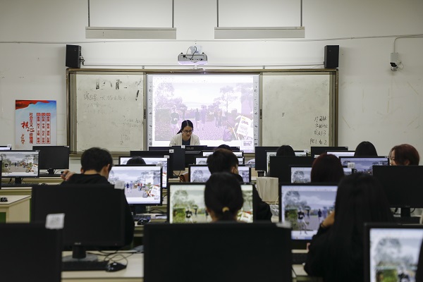 教师认真上园林计算机辅助绘图课