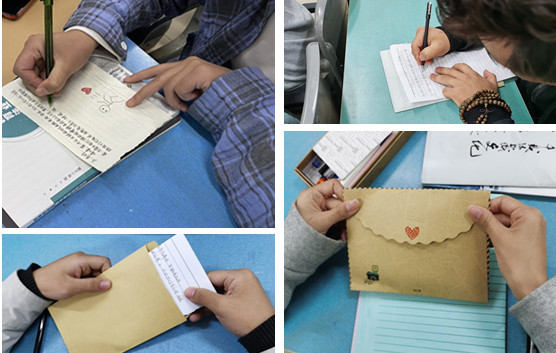 一阵沉默后,同学们纷纷开始“提笔写信”,通过书信、短信表达传递自己的感恩与爱。安静的教室里,同学们有的奋笔疾书,有的字斟句酌,用心地写下那些想说却又不曾说出口的话语。