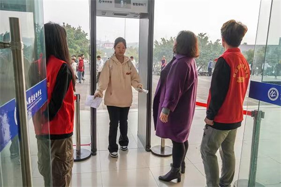 数百名师生志愿者坚守岗位,无私奉献。“我们提前一周开始准备,今天早上7点就全员到岗为考生提供考场指引、饮用水等服务,全程守护,直到考试全部结束。有我们在,家长、考生都可以放心!”校团委负责人说道。志愿者同学陈曦说:“很高兴可以参加学校今年的四川省单独招生考试服务工作,我负责的考场引导工作,考生们都自觉排队,有序进入考场。”