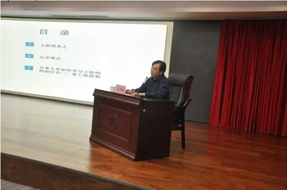 讲座中,王元珑教授从王阳明个人经历、哲学思想、后人评价等几方面入手,对王阳明其人做了详尽地介绍;然后,通过对心学要点的阐述让大家对知行合一思想有了更深层次的理解;最后针对公务人员如何学习王阳明的知行合一事上磨练思想提出了具体的途径和措施。