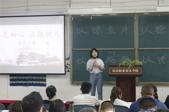 四川新闻网眉山5月20日讯(付进平 吕伟利 文/图)为落实《眉山职业技术学院师德师风建设年活动实施方案》文件精神。5月15日,眉山职业技术学院思政文化党总支在第二教学大楼2102教室开展“不忘初心、立德树人”教师演讲比赛。全系教师观看了演讲比赛。
