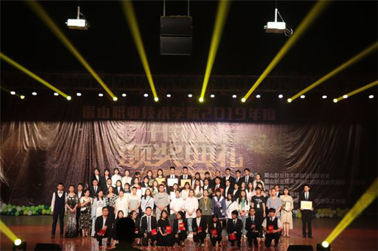 四川新闻网眉山4月23日讯(李文静 吕伟利 文/图)4月19日晚,眉山职业技术学院2019年社团文化节闭幕式暨“十佳社团”颁奖典礼在艺术中心举行。学生处相关工作人员、团委负责人、各社团指导教师及四川工商学院社团联合、四川城市职业学院社团联合会代表和1000余名学校社团成员代表参加颁奖典礼。