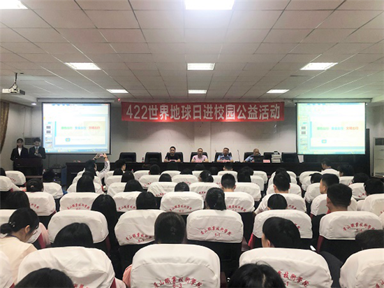 眉山市精神文明办公室志愿者服务中心主任王永强向学生介绍了世界地球日的由来,引导学生了解生活中环保的重要意义,呼吁全体师生从身边的小事做起,共同构建和谐美丽眉山。