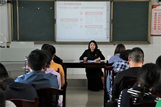 四川新闻网眉山4月19日讯(杨琳兰 文/图)4月17日,眉山职业技术学院师范教育系党总支开展主题党日活动,党总支副书记廖敏以《敢担当,有作为,争做干事创业奋发有为的党员教师》为题讲党课。