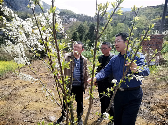 山间的田地错落有致,地里的花椒树、脆红李果树长势喜人。在学校驻村工作组的带领下,彭书君一行来到学校进行技术指导并援建的脆红李种植基地、花椒种植基地调研扶贫产业发展情况。彭书君指出,抓住产业发展就扭住了脱贫攻坚的“牛鼻子”,要尽快形成规模化、品牌化,延伸产业链,提升高山蔬果附加值。彭书君还听取了驻村工作组近期工作开展情况,商讨了二季度工作计划,鼓励驻村工作组充分发挥专业特长,敢于担当、真抓实干,切实帮助对口帮扶村打赢脱贫攻坚硬仗。