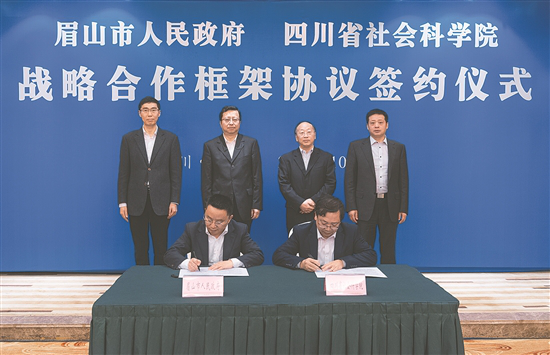 眉山市人民政府与四川省社会科学院签署战略合作框架协议。眉山网记者 杨槐 摄