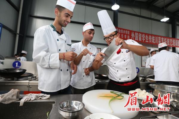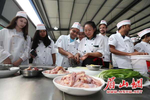 2018年5月13日,在东坡故里眉山市眉山职业技术学院内,来自四川大学“一带一路”沿线12个国家近40名留学生在这里学习川菜烹饪、体验茶艺及非遗青神竹编,通过学习中国传统技艺,感受中国传统文化的独特魅力。