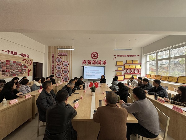 3月13日,商贸旅游系在第二教学楼2212会议室召开专业建设业务培训会,学校教学评价与督导中心主任罗树明主讲,系主任廖明江主持培训会。