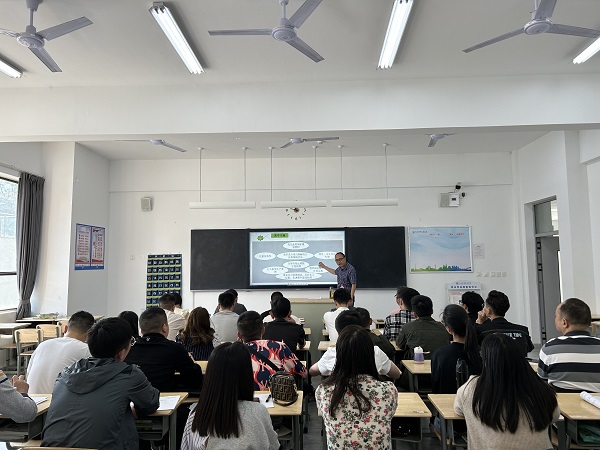 罗树明以解读2023年四川省教师教学能力大赛方案为切入点,围绕大赛方案的指导思想、教学内容、教学设计、教学实施、教案撰写、视频录制、如何备赛等方面展开详细阐述。在解读中,罗树明以教师日常课堂教学和近几年参赛作品为例,细致地分析了案例中的闪光点和不足,理实结合、逻辑清晰。参培教师认真聆听,并就自己在教学工作中遇到的疑惑和困难与罗树明进行了现场交流。