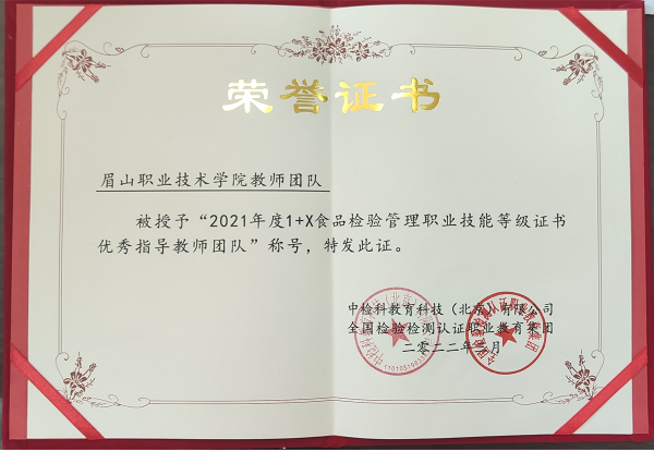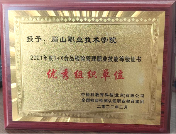 近日,我校荣获中检科教育科技(北京)有限公司、全国检验检测认证职业教育集团颁发的“优秀组织单位奖”和“优秀指导教师团队”称号。